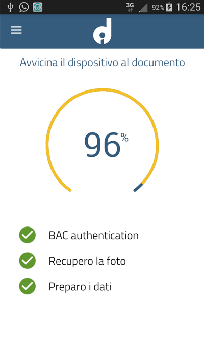 Come richiesto dall'app, occorre avvicinare lo smartphone al documento.